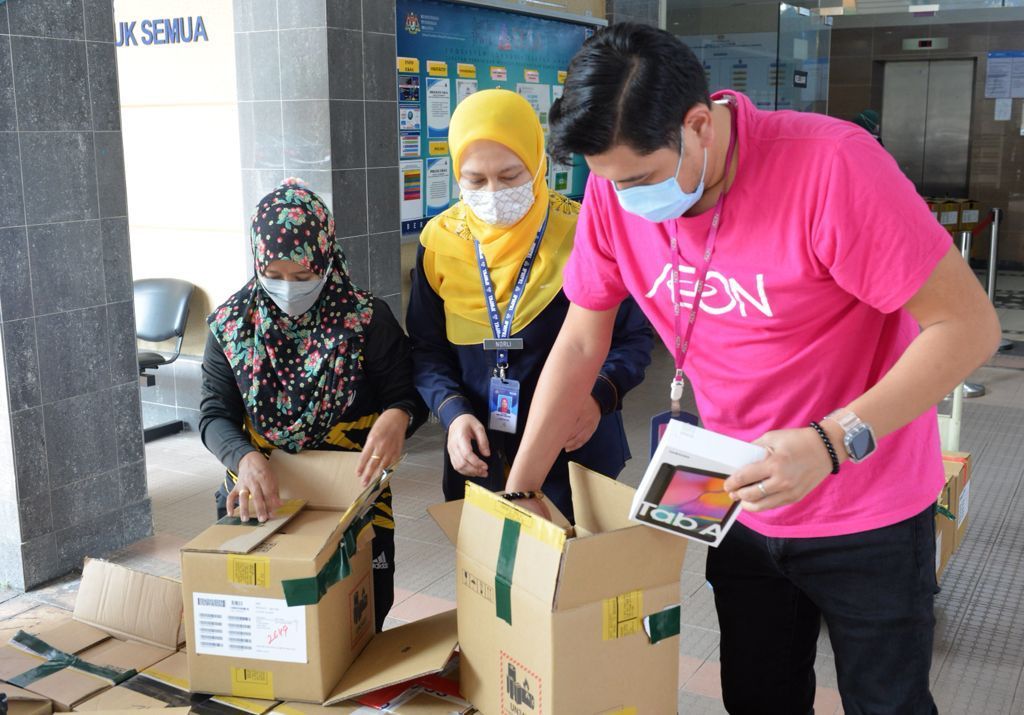 Yayasan AEON Malaysia menerusi inisiatif kelestarian untuk negara, AEON Sayap Bagimu menyerahkan 500 unit peranti elektronik hari ini kepada Jabatan Pendidikan Wilayah Persekutuan Kuala Lumpur